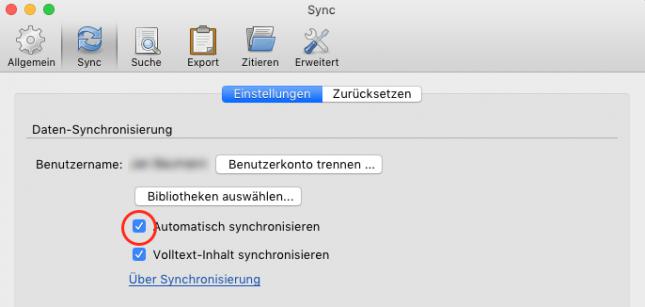 - Unter Sync Benutzername und Passwort eingeben (Automatisch synchronisieren sollte aktiviert sein).