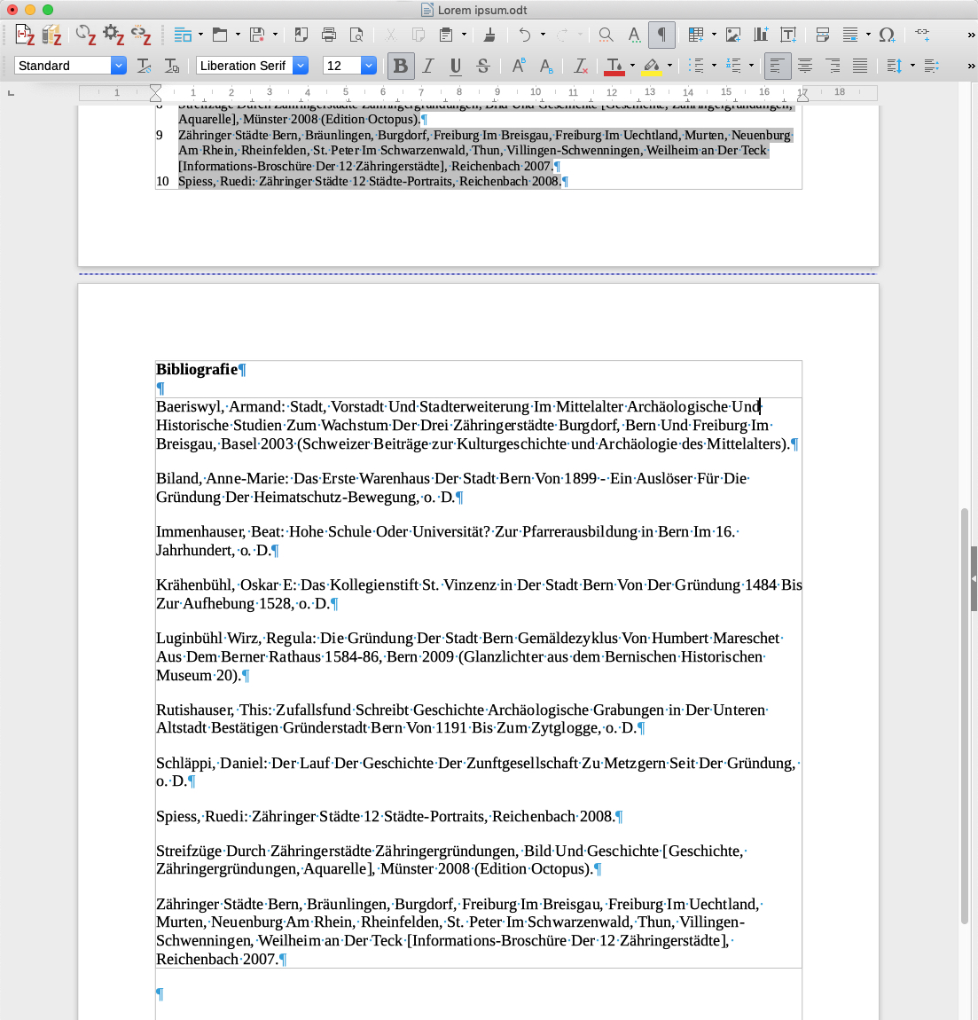Die folgende Anleitung gilt für LibreOffice auf einem Macintosh-Computer, in OpenOffice, Microsoft Word und Google Docs ist die Vorgehensweise aber sehr ähnlich: